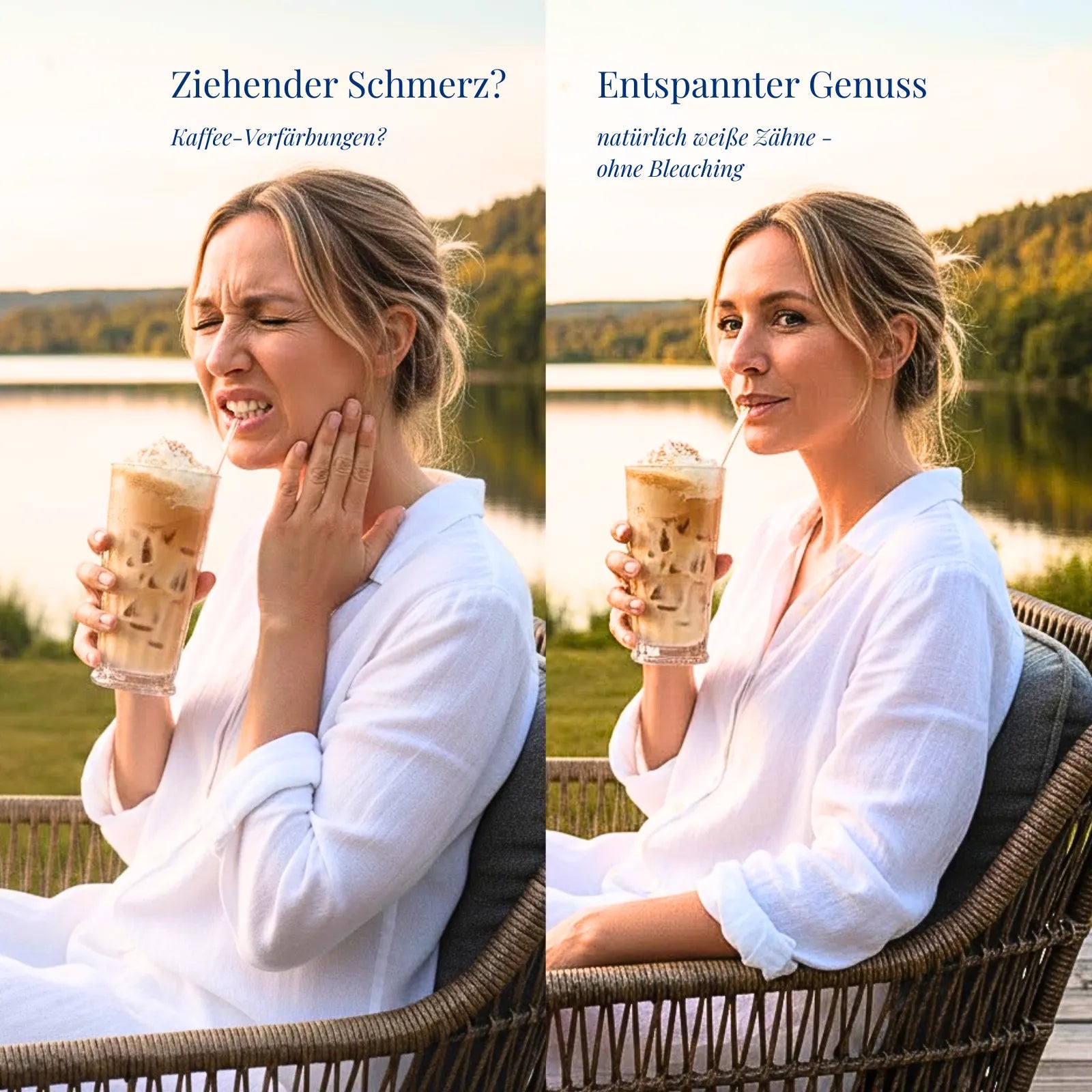Auf der glatten Zahnoberfläche können Farbstoffe aus Kaffee oder Tee weniger leicht anhaften.*